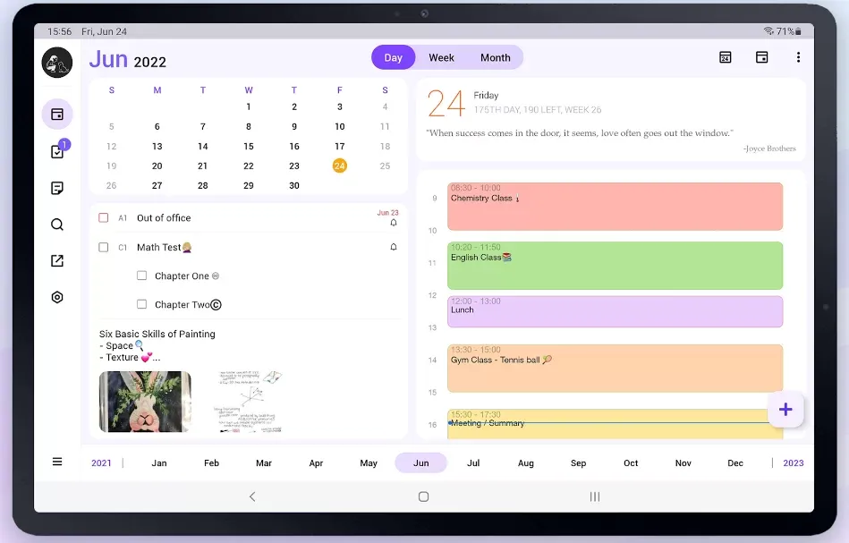 This one mimics the aesthetics of a regular paper organizer. It lets you switch between multiple viewing formats, take notes, add time slots for to-dos, block time, use stickers and benefit from premium covers. You’ll be able to compose to-do lists, share your calendar with others and sync your content across some of the most popular third-party solutions. As a cherry on top, this app is compatible with various styluses and e-pens.