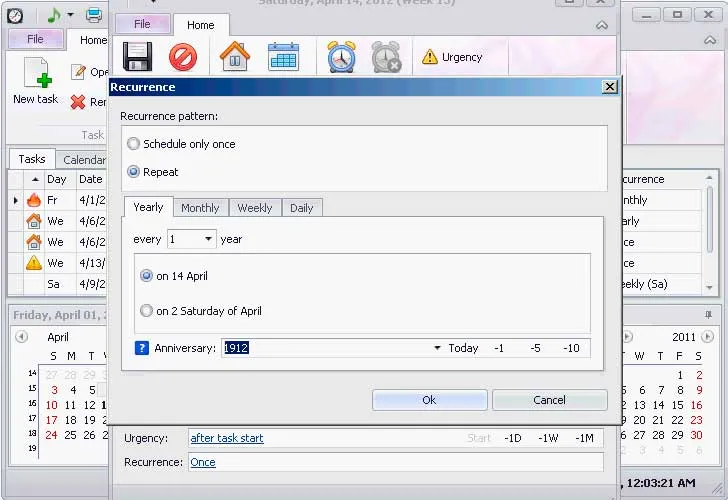 - Features. The app can offer simple one-off or recurring alarms in a pop-up window. Alternatively, it can be packed with extra functions and double as a full-fledged business or private calendar.
