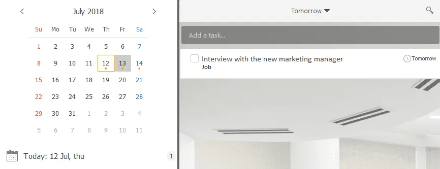 You can click for any day in the calendar and see the to-do list of this day: