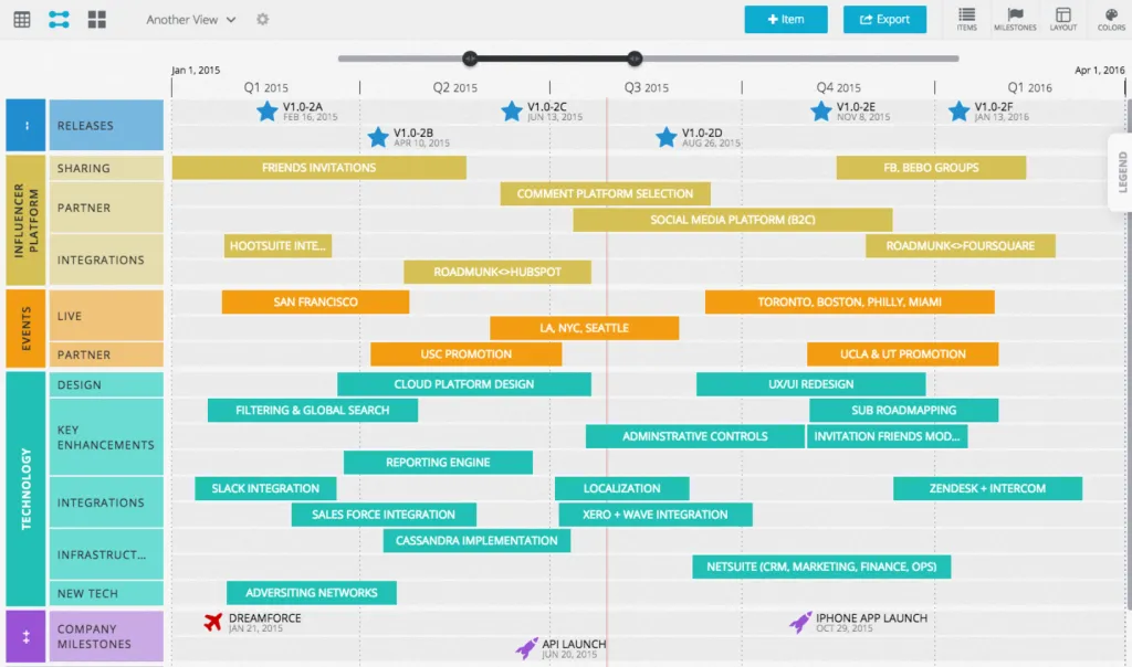 A popular service with ready-made product and marketing roadmap templates for creating, maintaining, planning projects.